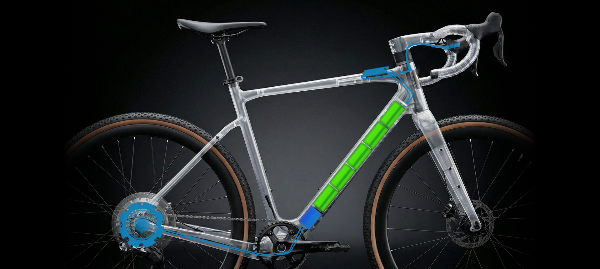 EXONE は、電動らしさを感じさせない洗練された都会的な佇まいに、グラベルらしい“外に走り出したくなるワクワク感” を融合させました。街でも自然でも、どちらにも馴染むデザインです。