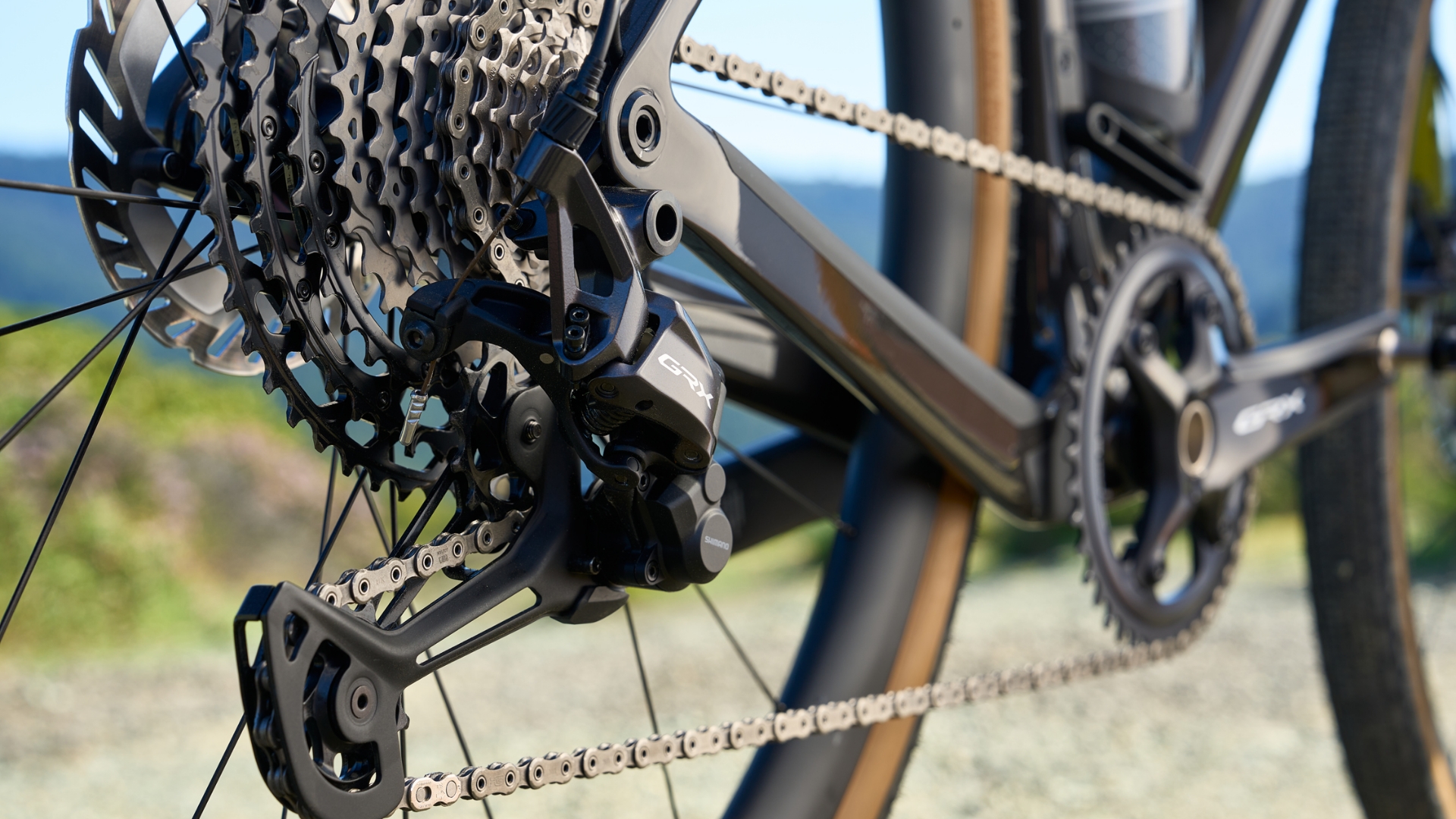 EXONE GRX 1x12s モデルには、グラベルライドを想定して設計された SHIMANO GRX RX820 12速ドライブトレインを採用。ワイドなギアレンジにより、平坦から登りまでリズムを崩すことなく対応し、SPWS アシストの自然なフィーリングを、しっかりと受け止めます。